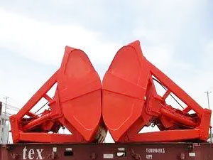 裝載貨物:操作手柄控制開合機構(gòu),使抓斗升到吊裝高度,然后放松鋼絲繩,使抓斗打開,將貨物倒入指定位置。